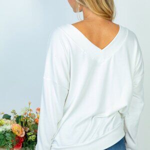 White Birch v neck light weight soft knit sweater with tapered waist and relaxed fit. Polyester/rayon. Price is firm. Send corresponding offer for bundles. Thank for looking!