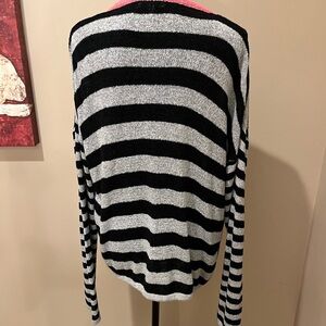 White Birch Striped Sweater with contrast crew collar & pocket, size Small