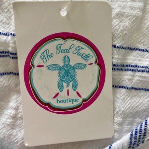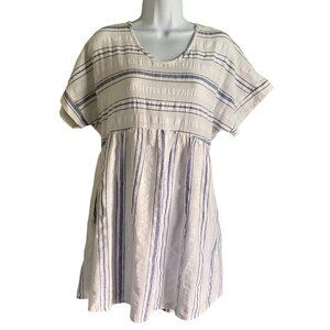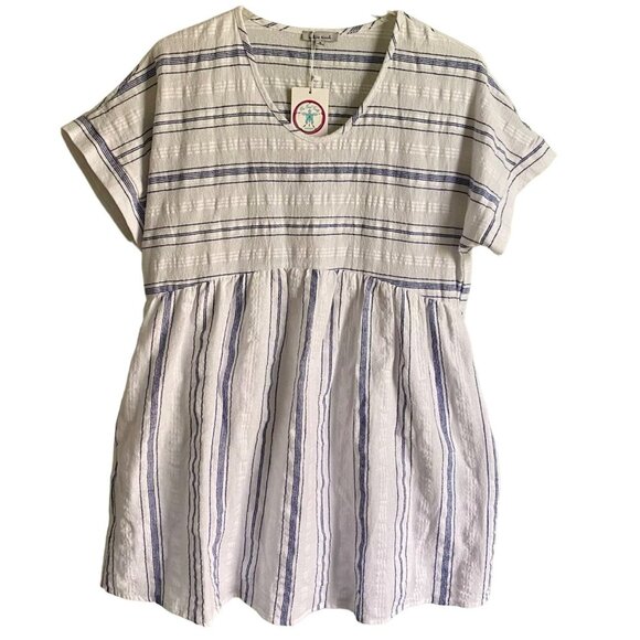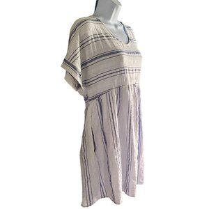 This White Birch Weekend at the Lake Dress in Women's Small is a delightful short sleeve outfit perfect for casual outings. It comes in white with blue stripes, lined, and includes pockets. Made of 100% cotton, it's brand new with tags.