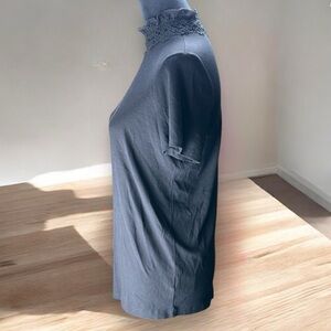 White Birch Wmns Mock Turtleneck Short Sleeved Ribbed Material Crochet Accent SM