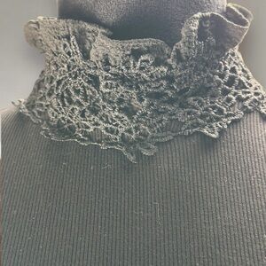 This White Birch women's blouse is a versatile piece perfect for various occasions including travel, casual outings, workwear, and business settings. It features a mock turtleneck neckline with a hook & loop closure and short sleeves with crochet accents. Made from ribbed knit fabric with a lettuce hem, this black blouse is lightweight and suitable for all seasons. The whimsical design includes flower and bohemian themes, giving it a romantic and retro touch. Perfect for layering or wearing on its own, this blouse offers a classic fit and a modern chic style.