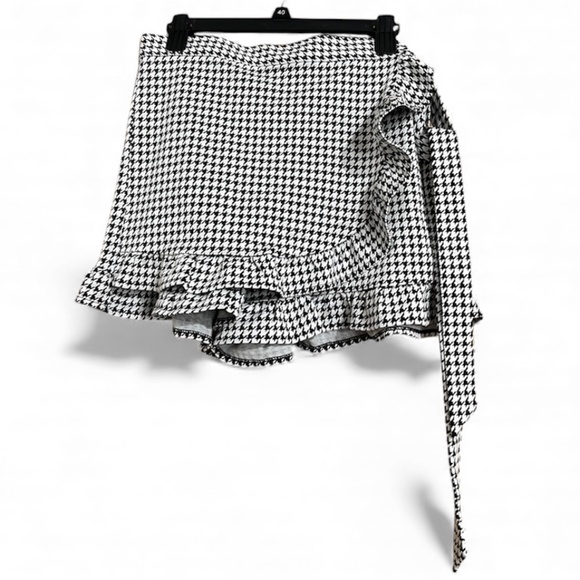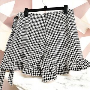 White Birch Women’s Black & White Houndstooth Macarena Shorts w/ Scallop Hems M