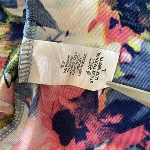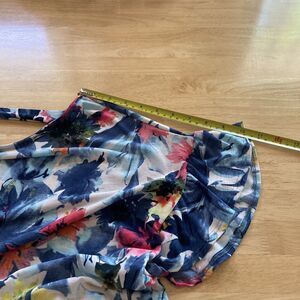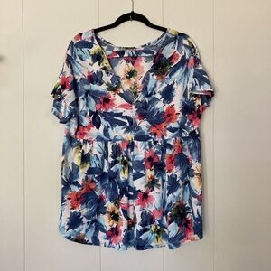 White Birch Womens Blouse Top L V-Back Floral Watercolor Ruffled Blue Pink