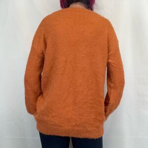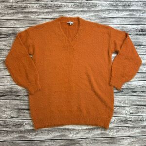 White Birch Women's Oversized Fit Fuzzy V Neck Sweater Burnt Orange M Med Medium