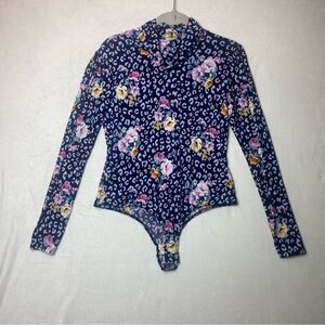 White Birch Blue/Floral Design Body Suit Size Medium