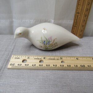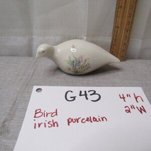White Bird Irish Porcelain Figurine Vintage Signed CRE Flowers Blue Pink Yellow