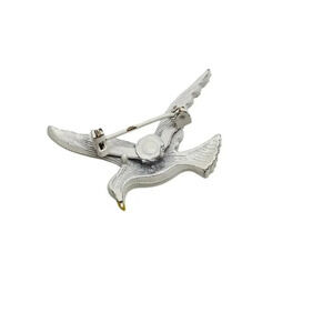 White Black Enamel Seagull Figural Bird Brooch Pin Vintage