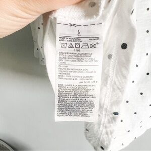 White & Black Polka Dot Cotton 3/4 Sleeve Scoop Neck Cut Out Twist Keyhole Large