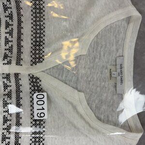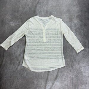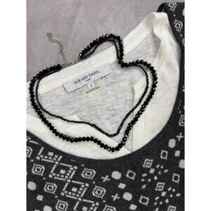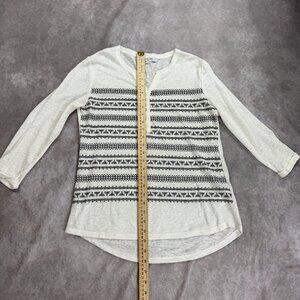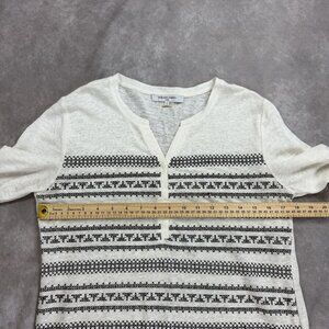 White & Black Tribal Print 100% Linen Long Sleeve Henley Blouse