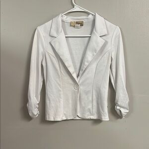 Elevate your style with this elegant white blazer from . Perfect for any occasion, this jacket offers a sophisticated look with its tailored fit and classic design.