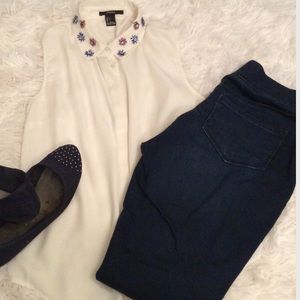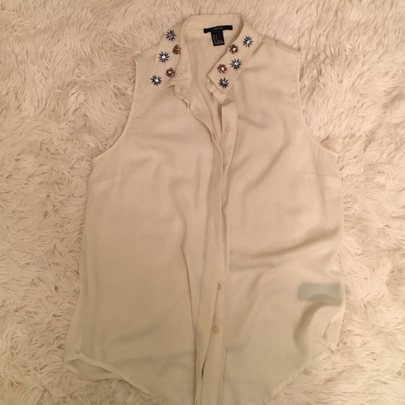 Size Small. Forever 21. Cute white sleeveless blouse with detailed collar.