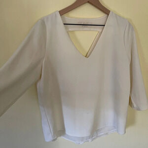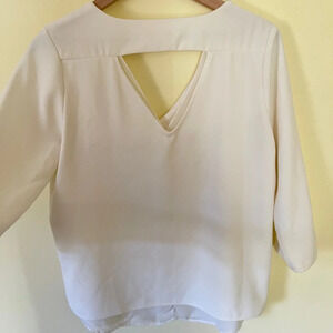 White Blouse with back cut out and bell sleeves. C&E brand size medium. One minor stain as shown and reflected in price. Open to offers and can make great bundles!