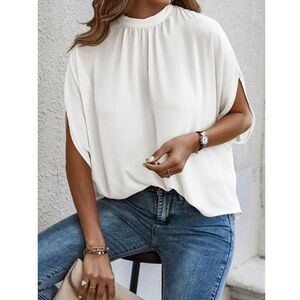 White Blouse Top Flowy, High Neck