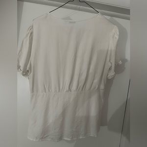 White v neck blouse from Monochrom. Zip closure for easy on and off. Perfect for work