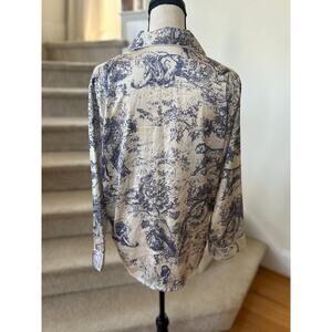 White & Blue Toile Jungle Print Satin Long Sleeve Pajama Pant Set