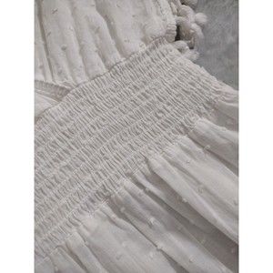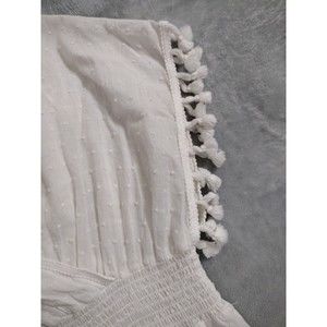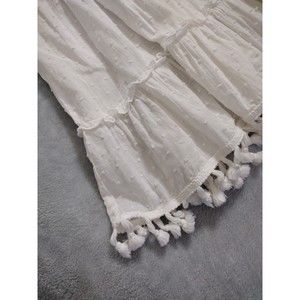 White Boho Top Blouse Fringe Elastic Waist Beach Clothing Culture Kitch Sz L