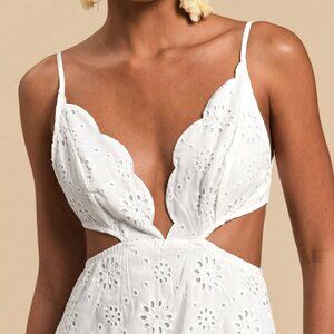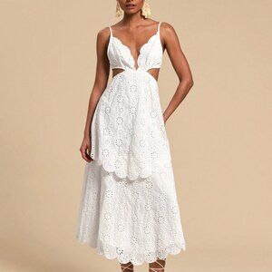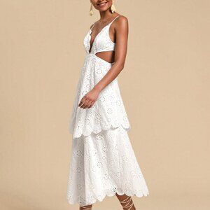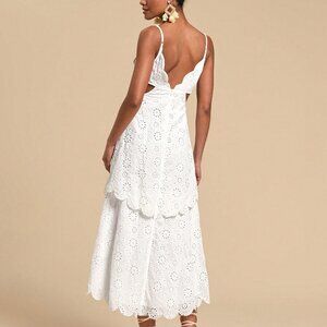 White Boho Women's Woven Eyelet Embroidery Waisted Hollow Out Strap Long Dress