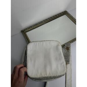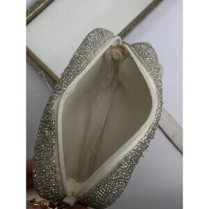 White Box Bag Purse with Stars / Gold Silver / Beaded / Zipper Closure / Handmad