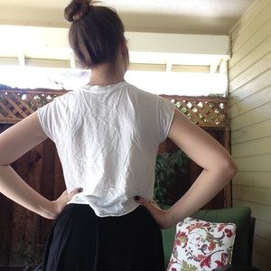 Barely worn one-size Brandy Melville crop top with black stitching on the front and short sleeves. Cotton and no stains.
