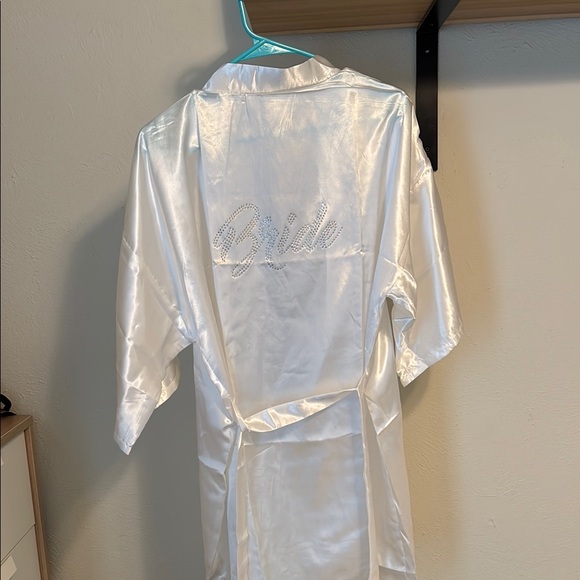 white silk bridal robe perfect to get ready in on the special day. Soft and silky !