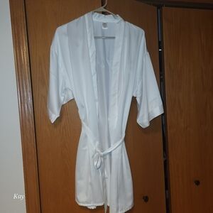 white Bridal robe with sash, one size, worn only twice
