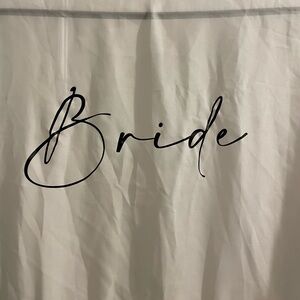 Elegant white robe with 'Bride' text. Perfect for a beachy bachelorette! One size fits most, sheer fabric with drawstring.