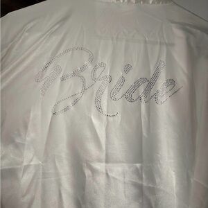 White bridal robe with “Bride” rhinestone writing on the back. Used once. Excellent condition.