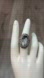 A gorgeous marble looking combination of black, gray, and white center oblong stone set in a scrolled and sunburst detailed sterling silver ring