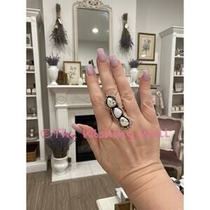 White Buffalo Three Stone Sterling Silver Ring Adjustable Size 5-10