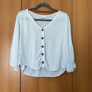 A nice basic button down blouse to add as a staple to your closet Pit to pit: 19" & Length: 20" Condition: Great