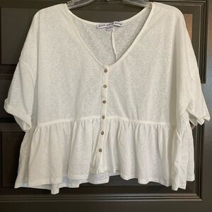 White Button Down Ruffle Top