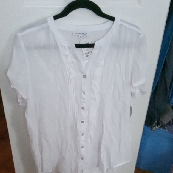 white button up top short sleeves rayon/polyester blend 1/14/26 E