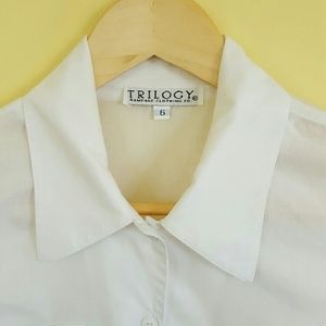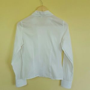 Lightweight, classic white button up shirt. It fitted through the body and fits a Juniors size 6.