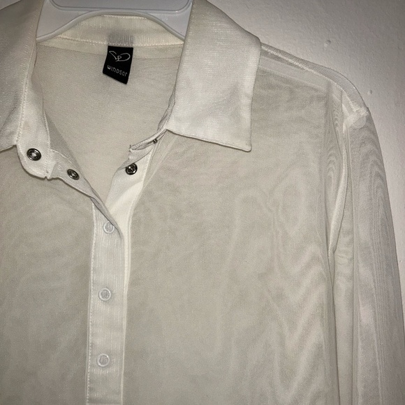 Transperant button down top. Great for layering for casual and business casual outfits. Gently worn but great for outfits!!