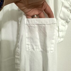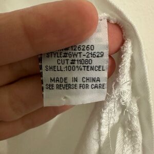 One front pocket with full button down on front. Lightweight. Excellent condition. Worn once. Material of the shell is 100% Tencel.