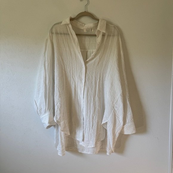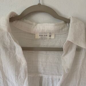 Linen white button-up blouse with a relaxed oversized fit. Perfect for casual beach cover up or could be dressed up.