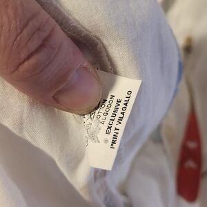 Stylish white button-up shirt featuring a colorful feather print. Perfect for casual outings.