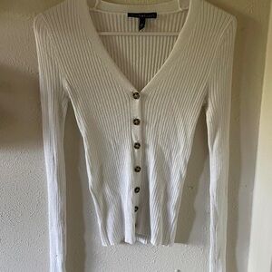 White Button-Up Ribbed Sweater