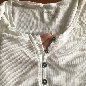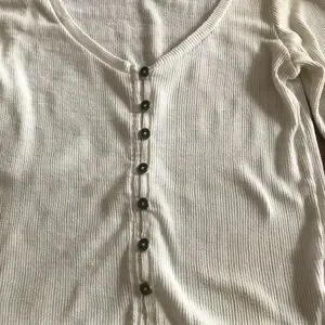This stylish white button-up ribbed top is perfect for any occasion. Its classic design and comfortable fit make it a wardrobe essential. It’s more of a off white color