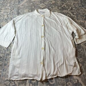 Stylish white button-up shirt with short sleeves. Features a classic collar and front buttons.