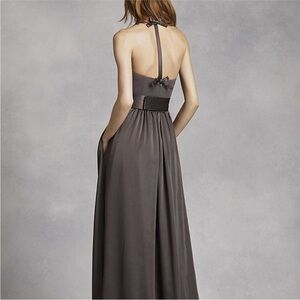White By Vera Wang V Neck Halter Sash Bridesmaid Dress