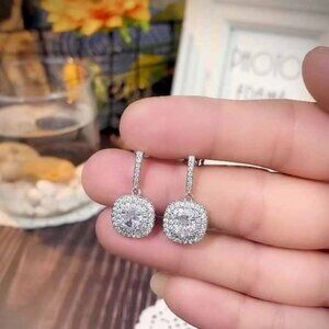 🔥 White CZ Geometric Shape Diamond Luxury Drop Earring for Women, HA4525