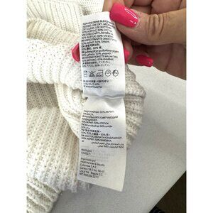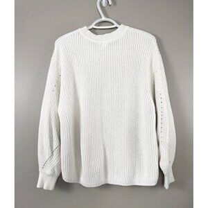 White Cable Knit Crewneck Sweater S Cozy Preppy Layer Minimalist Classic Cottage
