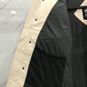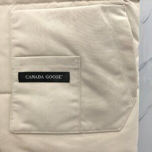 Stylish white puffer vest by Canada Goose. Features a front logo patch and button closure. Perfect for layering.