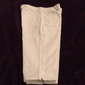 White capris never worn style is skimmer size 8 1 inch slits on the outside of each of the legs.