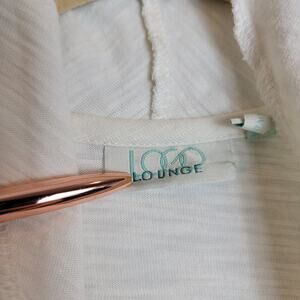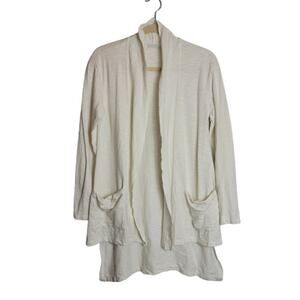 A cute white slub knit cardigan with patch pockets and lower back. Logo Lounge. Size XS.