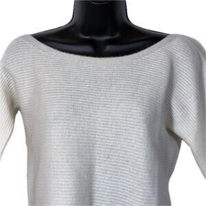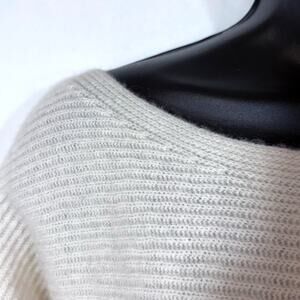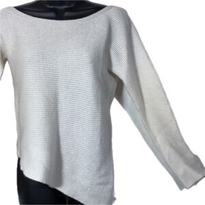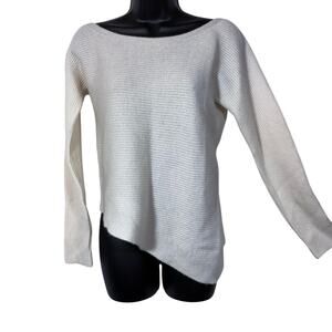 White Cashmere Sweater Ivory Raffi Asymmetrical Ribbed Preppy Neutral Small