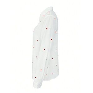 White Casual Shirt Red Hearts Button Down Up Long Sleeve