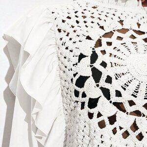 White Casual Women's Apricot Hollow Hook Flower Splicing Ruffles Tops