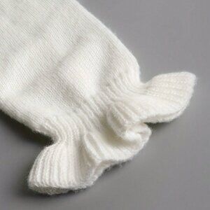 White Casual Women's Autumn/Winter Solid Color Frilled Edge V-Neck Sweater